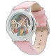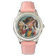 Relógio Esteira de couro rosa de aço inoxidável