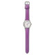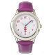 Vocês podem admirar meu desenho de Dia de os namorados e desenho romântico que eu chamo, "Eu te amo", de um coração vermelho e rosa listrado, adicionado a este relógio de couro roxo de aço inoxidável.