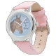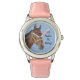 Um novo relógio de pulso equestre, rosa e roxo, incrível, com uma pintura de um cavalo puro, vestindo um halter multicolorido e a legenda "Eu Preferencialmente Estaria Andando! Seu equestre vai adorar este relógio em qualquer ocasião.