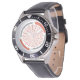 Estilo: Aço Inoxidável Sapo Preto Pulseira em Cabeça Estanquinho Vigiar Cartaz do Pulso Masculino: Precinta do Couro: Dimensões da Face: 1,21" de diâmetro Precinta: 9,2" x 0,86" Caso: 1,65" de diâmetro Peso: Análogo de 0,14 lb de 3 mãos Japão Quartz® impressão personalizada Precinta de couro Torneio de foldver com fecho triplo Resistência da água: até 10 ATM (328 pés) 1 ano fabricantes com garantia limitada Bateria incluída Este produto é recomendado para idades 13+