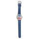 Relógio com design com bandeira variante de Meclemburgo-Pomerânia Ocidental; design com cinco faixas horizontais de vermelho, branco, azul e amarelo, e com ilustrações da cabeça do touro e da águia vermelha