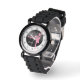 Qualquer garota que ama balé amará este relógio! Ele apresenta uma bailarina de silhueta rosa no centro. Acima da figura está um spray de poeira prateada. As imagens são colocadas sobre um fundo negro dramático. Os números colocados num círculo exterior branco facilitam a leitura do relógio.