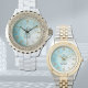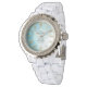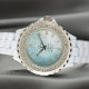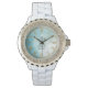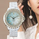 Relógio Feminino Personalizado de Mármore Azul com Cristal - Presente de Casamento ou Aniversário para Casais Elegantes.