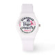 Relógio de silício branco esportivo feminino Com uma banda de silício confortável, este relógio é perfeito para o dentro de guerreiro de exercícios! Faça-o realmente seu ao personalizar o rosto do relógio com uma citação inspiradora, imagem ou design. Relógio de pulso feminino Material: Strap: Silicon Case: Dimensões do Silício: Face: 1,18" de diâmetro Strap: 9,5" x 0,79" Caso: 1,57" de diâmetro Peso: 0,082 lb analógico de 3 mãos Japão Quartz® Cheio impressão personalizada na face Disponível em 2 cores - Fecho branco e cor-de-rosa Somente fabricantes Bateria de garantia limitada incluída Este produto é recomendado para mais de 13 anos