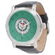 Watch with the flag of Wichita, Texas. A red, white, and blue with flag of city of Worcester, Massachusetts; green flag with white emblem with red heart in the center