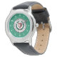 Watch with flag of city of Worcester, Massachusetts; green flag with white emblem with red heart in the center