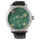 Relógio Flocos de neve do Ouro Xmas em fundo verde