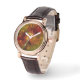 Relógio Flor verde-laranja-abstrato Vermelho Castanho-Cast