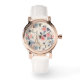 Um relógio com um adorável padrão temático francês. Flores bonito, torre Eiffel e borboletas. As cores incluem rosa, azul, pêssego e creme.