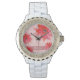 As Flores Vermelhas Whimsical Deixam Uma Vigia Rosa. Personalize este elegante relógio com o seu nome.