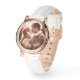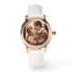 Este belo relógio tem um rosto/quadro cor-de-rosa e uma banda branca. Adicione a sua foto especial e personalize com texto manuscrito, escrito, com script na parte inferior. Exemplo de texto é, "Nosso amor é para sempre", ou mude-o. Este relógio feminino faz um belo presente para uma esposa ou namorada. Sua foto terá uma dobradiça roscada por causa do filtro escolhido. Para mudar isso, use a ferramenta design. Escolha a foto, na página da ferramenta design e, em seguida, "filtros". Altere-o para sem filtro. Este é um dos muitos estilos de relógio de pulso. O design é fácil de trocar para qualquer outro estilo.