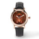 Arte fractal abstrato brilhante, mágica e única. Um desenho decorativo e psicodélico marrom e aterrador. Design para seu relógio de pulso artístico incomum e muito mais.