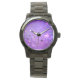 Relógio Fundo de folhas roxas com estrelas