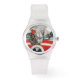 Relógio Garota e Cachorro num Automóvel Vermelho