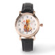 Um relógio com uma ilustração adorável de aquarela. Um gato de mesa laranja parecendo amigável e feliz com corações girando em volta.