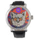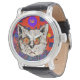 Gato maluco engraçado com olhos em espiral num fundo de abstrato