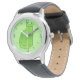Assista em um Médio moderno do século , um design de gato retrô, em um padrão de luz sedoso e gradiente para pontos de verde limão profundos, esboçado em verde esmeralda profundo, em um fundo de verde limão leve