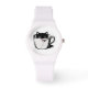 Relógio Gato preto com nariz vermelho escondido em um copo