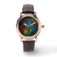 Genesis Blue Abstrato Art Perfect Square Brown Leather Watch