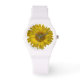 O bonito relógio de girassol amarelo faz uma ideia de presente de excelente para um amante de flores, jardineiro ou florista. Esta peça botânica personalizada apresenta uma fotografia floral de uma flor de girassol amarela com fundo branco.