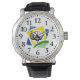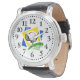 Este moderno relógio do tempo de golfe mostra uma teia com uma bola e um clube preparado para bater num rosto branco com banda de couro preto. É perfeito para o amante de golfe em sua vida que vive por um tempo.