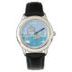 Conte o tempo com este divertido relógio de moda que mostra a engraçada arte de desenho animado de golfinhos nadando no oceano! Você pode até personalizar a banda e o estilo. Criado com papel de construção e manipulado em Photoshop pela KLeighE do Whimsical Cartoon Art ™ da Hinterland Harmony