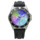 Delicar o gradiente iridescente do arco-íris - design abstrato com boas vibrações para um bom humor. Este relógio será um bom presente para um amigo ou família.