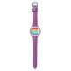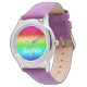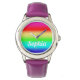 Rainbow Cores Gradient Stripe Girls Personalizadas Watch. Personalize a tipografia na moda cursiva com um nome, monograma ou outro texto. Com seu bonito e brilhante fundo colorido, este design retrógrado colorido do arco-íris faz uma ideia de presente de excelente para uma garota - para uma festa de aniversário de arco-íris e unicórnios, presente de menina de flores de casamento, de volta à escola/primeiro dia de ideia de roupas escolares, Natal ou outra ocasião especial.