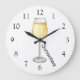 Quebre a borbulha com este relógio de chic e na moda champanhe! Este relógio clássico informa que são cinco horas em algum lugar. O 5 se foi e em seu lugar está a palavra "algures". No meio do relógio está uma bebida de champanhe de água, bolhas e tudo. Fundo branco.