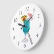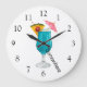 Sonho com uma ilha tropical com este relógio de bebida tropical fofo e engraçado! Este relógio diz que são cinco horas em algum lugar. O 5 não está em lugar algum e em seu lugar está a palavra "algures". No meio está uma bebida tropical azul-aquarela com uma fatia de abacaxi, cereja e pequeno guarda-chuva rosa. Fundo branco.