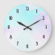 Um relógio com um abstrato moderno design de aquarela. As cores azul e púrpura se misturam e se misturam em um padrão de abstrato de cor pastel mole.