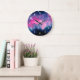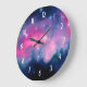 Relógio Grande Abstrato de Galáxias e Estrelas Rosa e Azul