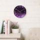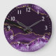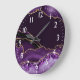 Relógio Grande Ágata Marmorele com Brilho Roxo e Prata Falsa