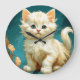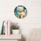 Relógio com um gato branco no estilo Art Nouveau de Alphonse Mucha! Um gato branco fofo encara bem o observador contra um pano de fundo azul. Um presente de excelente para amantes de gatos e colecionadores de Art Nouveau!