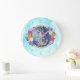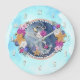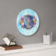 Relógio Grande Âncora Floral Náutica Moderna Aquarela Azul