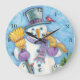 Relógio Grande Animais Fofos Construindo um Boneco de Neve para o