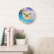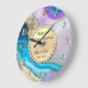 Relógio de aniversário de casamento elegante em ouro, diamantes e mármore colorido.