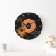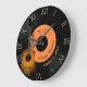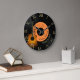 Um relógio clássico, elegante e personalizado de aniversário de casamento que apresenta um histórico de vinil (isto é uma ilustração, não um registro real), números romanos, tipografia moderna, um violão acústico e uma partitura musical. Um belo presente de casamento personalizado ou presente de aniversário para um jovem - e jovem de coração - casal que adora música, comemorando suas 1ruas, 3°, 5, 10, 25 ou 50 anos.