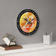 Celebrar o 23º aniversário do casamento do topaz imperial e um amor que representa o teste do tempo com este relógio comemorativo! As inscrições elegantes com um confete hexagonal num fundo de fogo amarelo-vermelho-laranja profundo acrescentam um toque memorável para esta ocasião especial e um marco extraordinário. Personalize com os nomes do casal, as datas do casamento e as mensagens de parabéns. Design © W.H. Sim. Mais informações em zazzle.com/expressionsoccasions