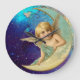 Anjo romântico de cabelo, azul eyed louro bonito lunático que pendura na lua em sparkles do ouro, turquase, azul do aqua, cerceta, cores roxas com pintura dos meios mistos da folha dourada e de prata. É igualmente um presente bonito para o Natal, ocasiões especiais, aniversários e casamento.