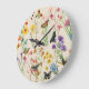 Relógio Grande Aquarela Flores e Borboletas Jardim Floral