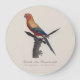 Esta ilustração apresenta um macho de Aratinga solstitialis de cores brilhantes, renderizado num estilo clássico de história natural reminiscente das primeiras obras ornitológicas. O pássaro é mostrado empoleirado num galho texturizado, sua postura calma, mas alerta. Sua plumagem irradia com tons intensos - laranja ardente na face e no peito, misturando-se ao amarelo dourado ao longo do corpo e contrastado por penas de voo verde e azul escuras. A composição e os detalhes finos refletem a influência de Jacques Barraband, cujo trabalho na documentação de aves exóticas combinou precisão científica com elegância artística. A inscrição "Perruche Ara, Guarouba mâle" liga ainda mais a imagem às interpretações históricas europeias de papagaios da América do Sul.