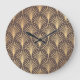 Relógio Grande Art Deco Dourado: Luxo Geométrico Minimalista