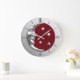 Relógio Grande Arte Deco Lua e Estrelas - Vermelho Escuro e Prata
