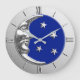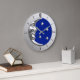 Relógio Grande Arte Deco Moon e Estrelas - Azul Cobalto e Prata