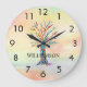 Este relógio colorido de parede é decorado com uma árvore genealógica de mosaicos nas cores do arco-íris em um fundo de aquarela. Facilmente personalizável com seu nome. Porque nós criamos nosso próprio trabalho de arte você não encontrará essa imagem exata de outros designers. Mosaico original e Watercolor © Michele Davies.