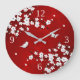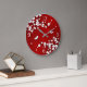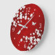 Este relógio de números bonito apresenta um galho de cereja branca e preta e borboletas bonitinhas em um fundo vermelho rubi.