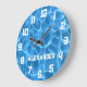Foto de luz tocando no fundo de uma piscina de natação digitalmente pintada de azul brilhante. A foto da piscina de natação azul aqua não está definida como uma modelo, mas você pode substituir esta foto pela sua. O nome e a tipografia do número do relógio apresentam uma fonte de estilo esportivo atlético em branco. Há vários estilos de número na minha loja para ajudá-lo a personalizar seu design. Crie seu próprio texto personalizado para criar seu próprio grande presente de relógio redondo para um nadador ou mergulhador.