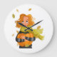 MULHER DO OUTONO SEGURANDO UM BOMBEIRO ARREDONDADO PELA QUEDA DAS FOLHAS.