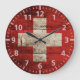 Relógio Grande Bandeira da suiça na grão de madeira velha